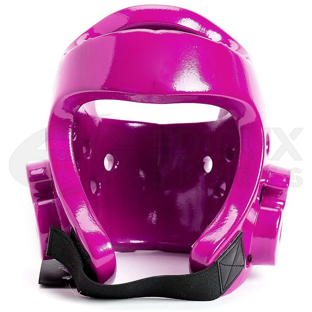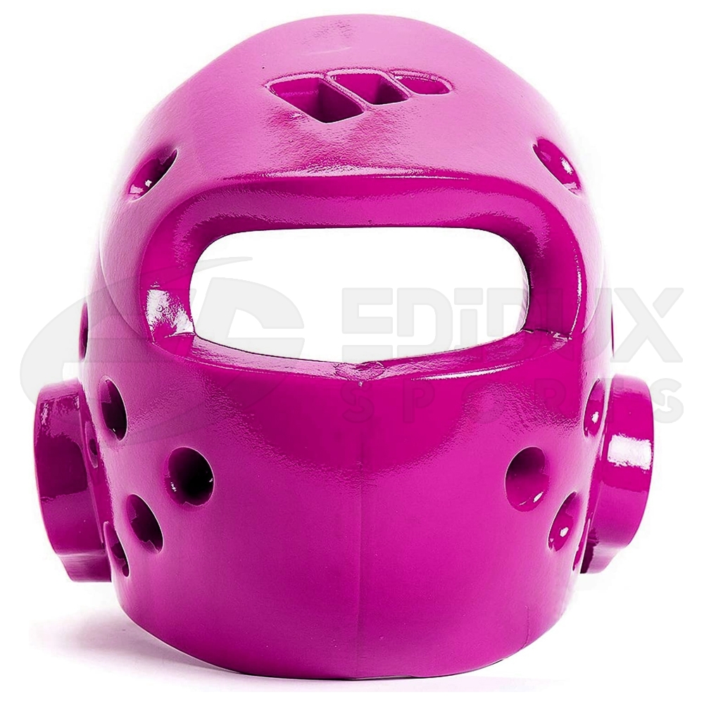 Taekwondo headgear is typically made from vinyl or dipped foam and is fastened by a chin strap. It may contain vents designed for better ventilation and hearing. Face cages may also be attached to Taekwondo headgear to offer additional protection to the face.