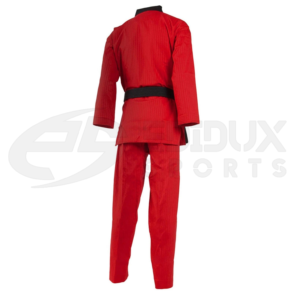the karategi (custom karate uniform) has evolved in a manner that maximizes mobility and speed without the extremely coarse and strong fabric required for grappling and throwing found in Judo.