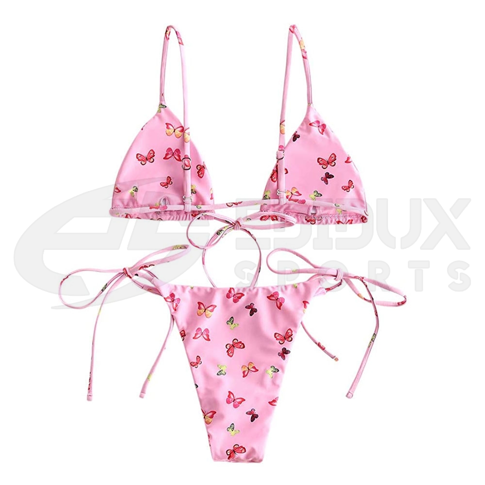 Bikini Top: Adjustable Spaghetti Straps, Padded Bra. Bikini Bottoms: Tie Side, Low Waisted