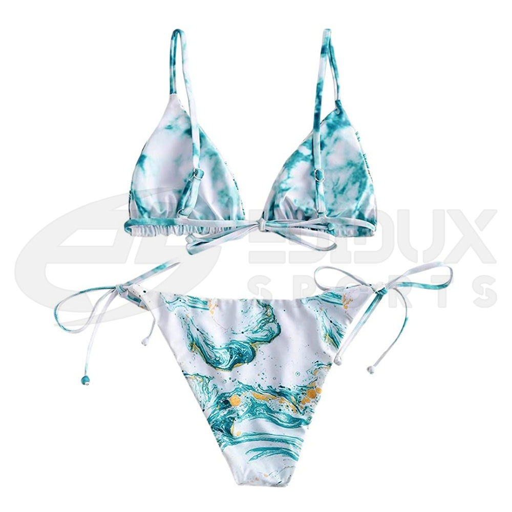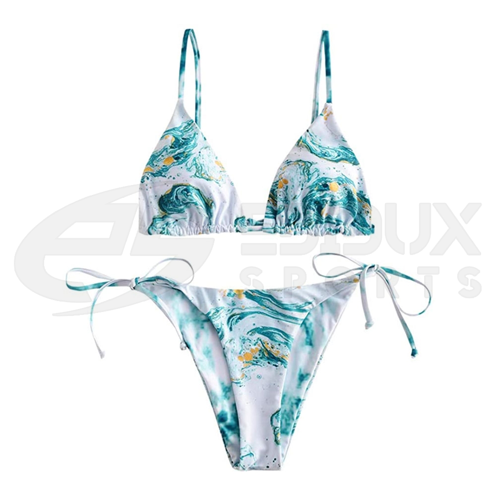 Bikini Top: Adjustable Spaghetti Straps, Padded Bra. Bikini Bottoms: Tie Side, Low Waisted